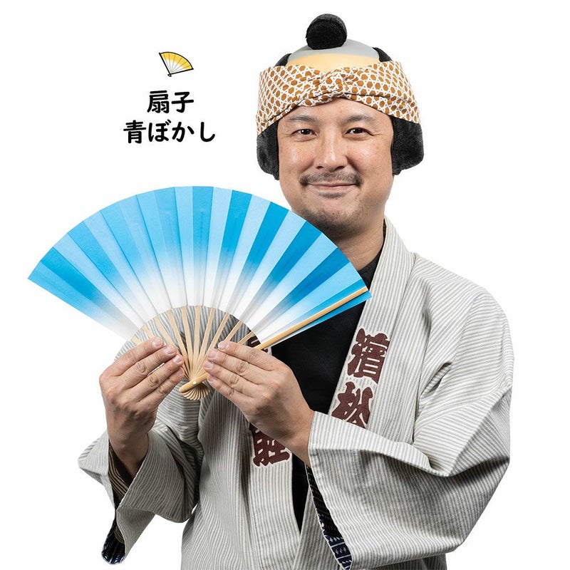ぼかし扇子 青