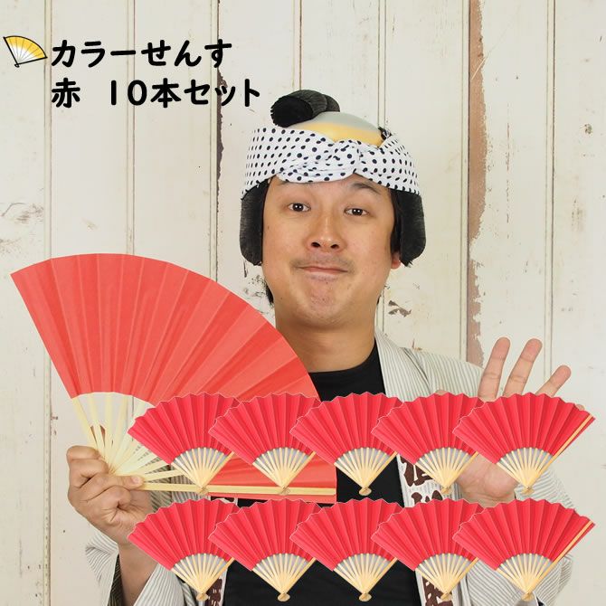 カラー扇子 赤
