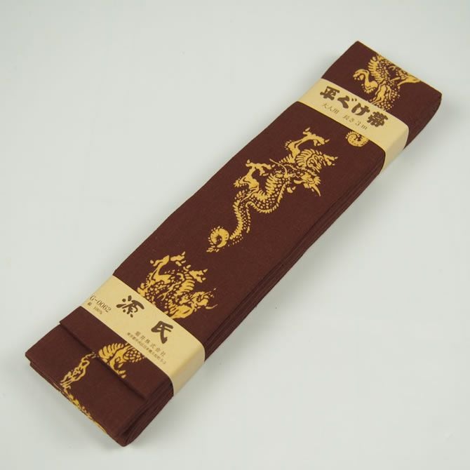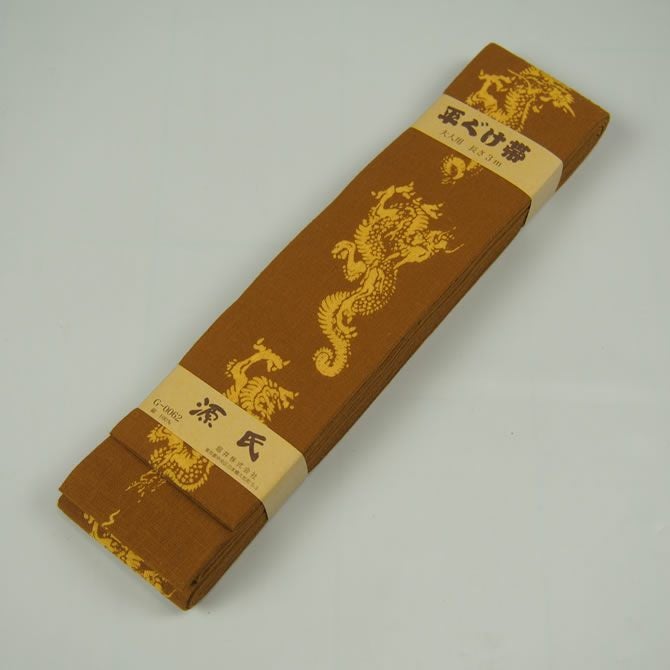 源氏 平ぐけ帯 龍 金茶