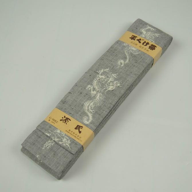 源氏 平ぐけ帯 龍 グレー