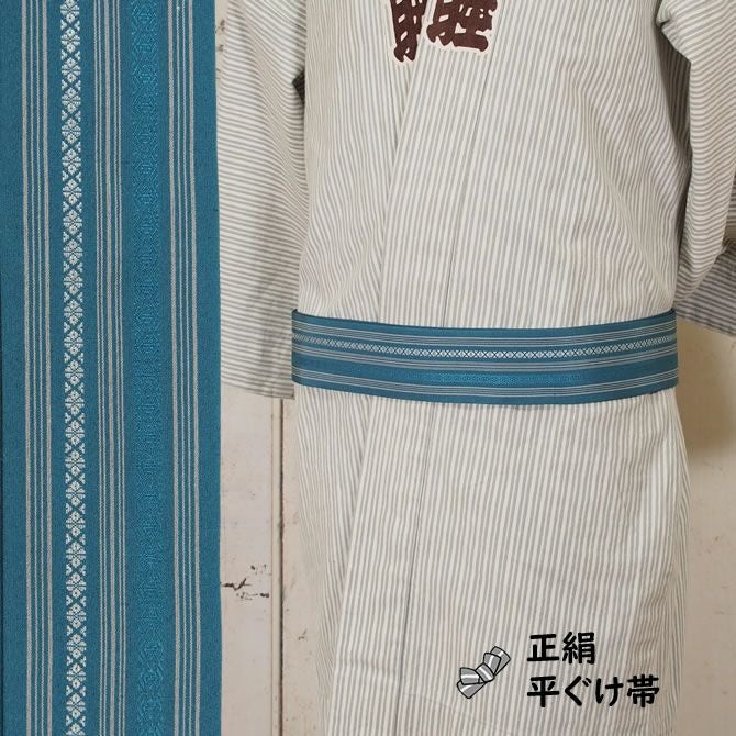 正絹 平ぐけ帯 絹-7 ブルー