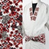 ちりめん一重巻き帯 赤桜 白地
