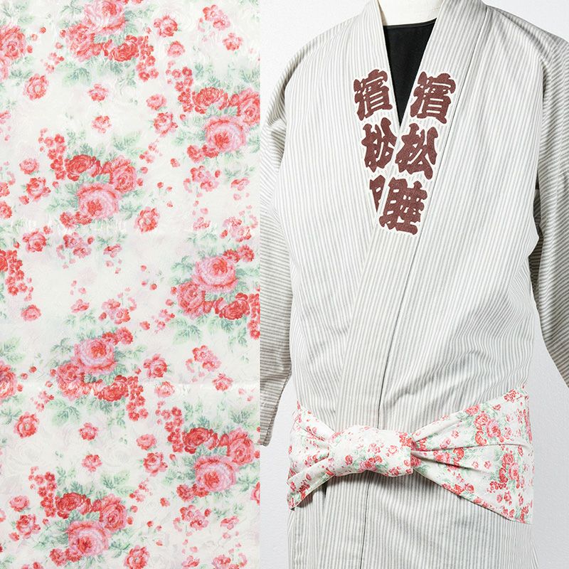 ちりめん一重巻き帯 白地に花