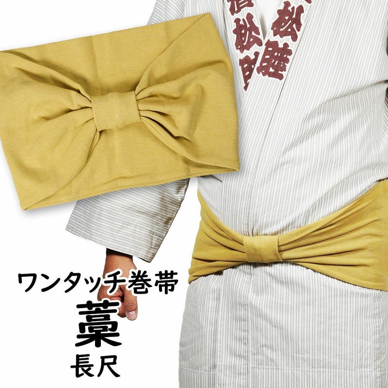 長尺 ワンタッチ巻き帯 ムラ染め 藁 ウエスト120cmまで対応