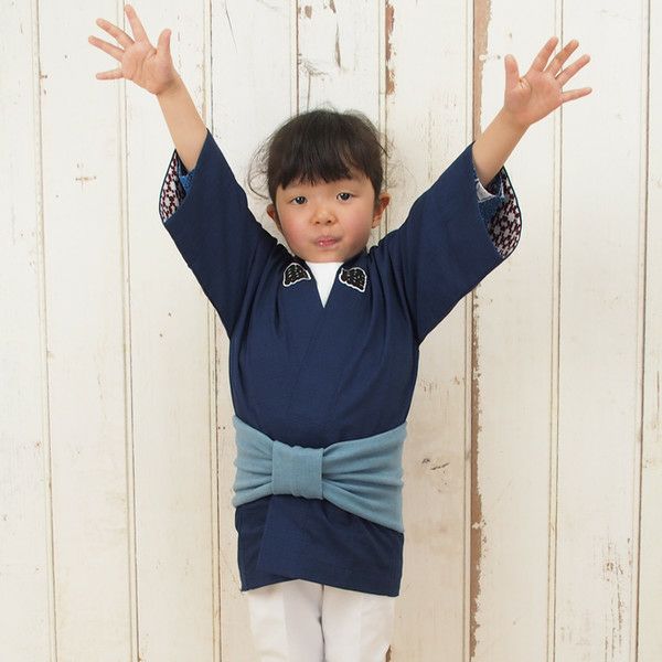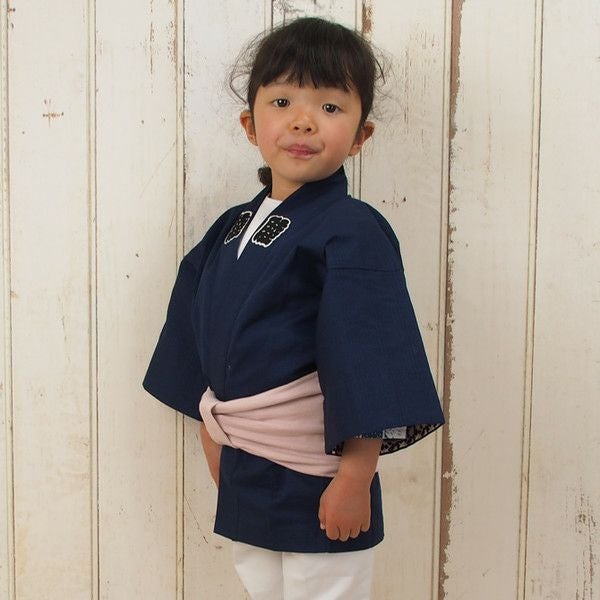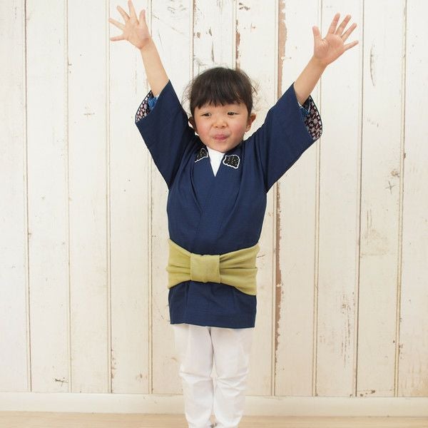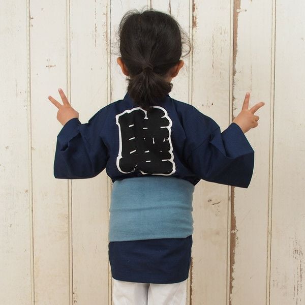 子供用 ワンタッチ巻き帯 ムラ染め 浅葱