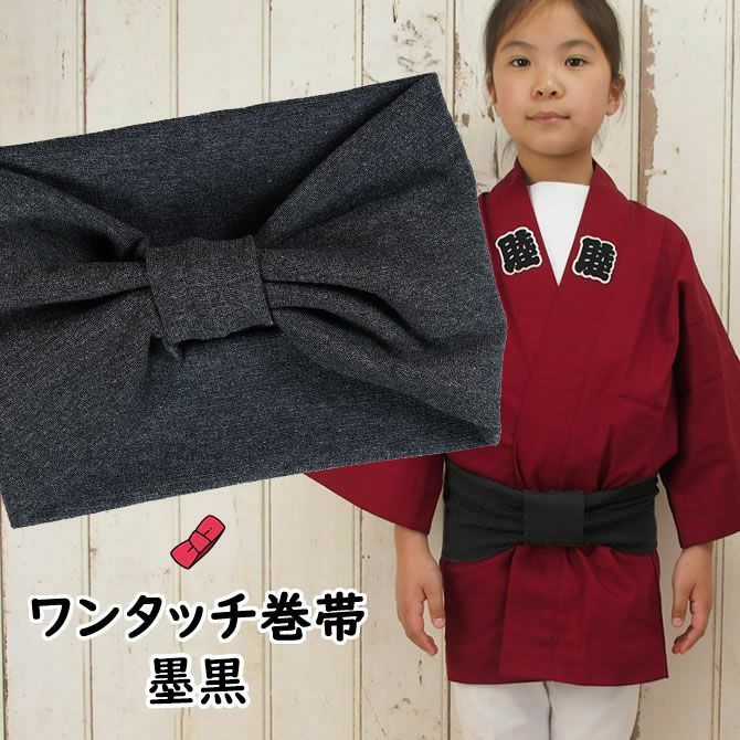 子供用 ワンタッチ巻き帯 墨黒