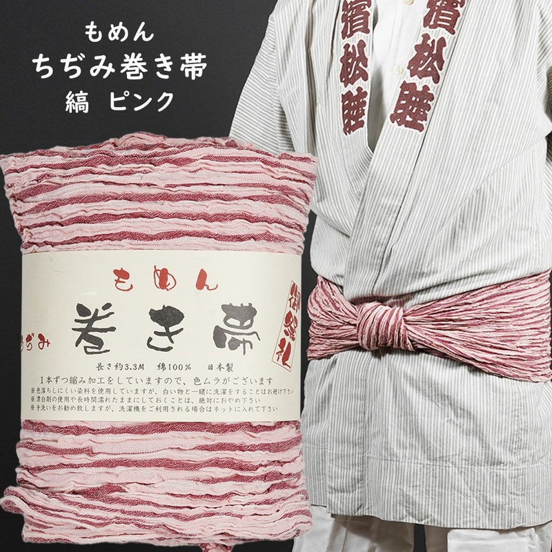 木綿ちぢみ巻き帯 縞 ピンク #1