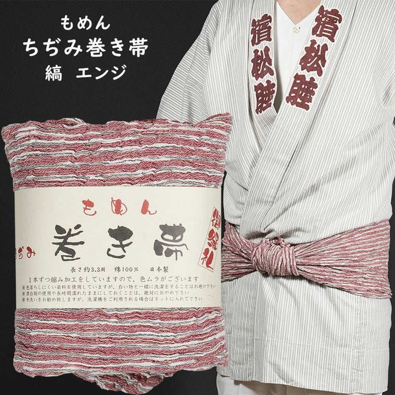木綿ちぢみ巻き帯 縞 エンジ #2