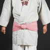 とても綺麗な明るいピンクです。 巻くにあたり適度に摩擦が高く緩みづらいです。体型によりますが、あと20cm程度長いと締め易いと感じました。