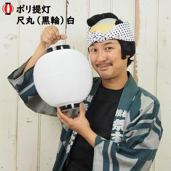 ポリ提灯 尺丸 黒輪 白無地