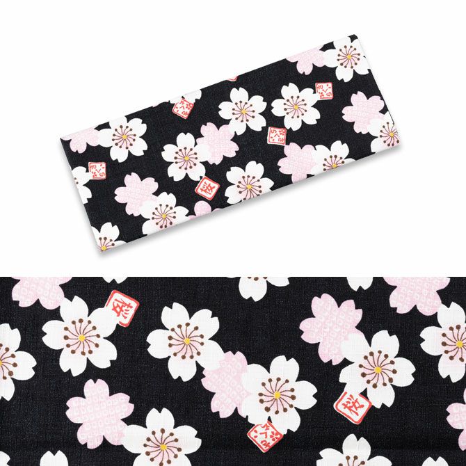 東京小粋 プリント手ぬぐいサイズ生地 大さくら 黒
