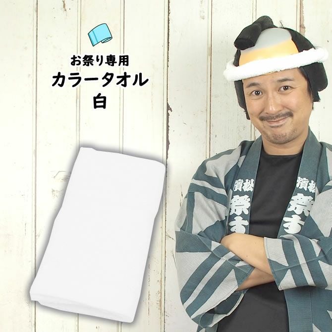 お祭り専用カラータオル 綿100% 無地 ホワイト(白色)No.15