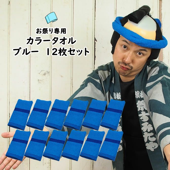 お祭り専用カラータオル 綿100% 無地 ブルー(青色No.7) 1ダース(12枚セット)