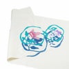 この手ぬぐいの染め技法は、伝統的な「注染」という手法です。折りたたみにして糊付けし、その上から染料を注ぎ染めする熟練を要する染め方です。特性上、染料のにじみや染斑ができてしまうこともございます。また、気温や湿度に色や風合いが影響されます。これも手染めの味としてご理解ください。