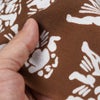 この手ぬぐいの染め技法は、伝統的な「注染」という手法です。折りたたみにして糊付けし、その上から染料を注ぎ染めする熟練を要する染め方です。特性上、染料のにじみや染斑ができてしまうこともございます。また、気温や湿度に色や風合いが影響されます。これも手染めの味としてご理解ください。