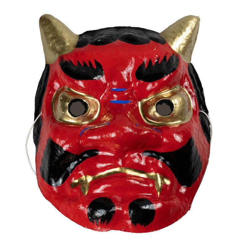 お祭り・イベント用のお面(おめん)・張子(はりこ)・紙製・赤鬼(あかおに)・角(つの)つき
