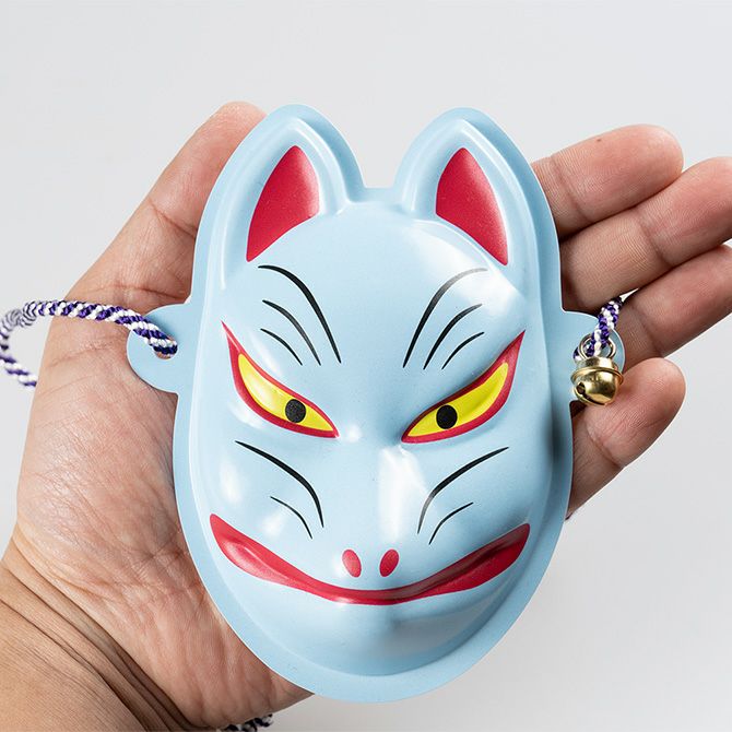 髪飾り用 ミニお面 狐(きつね) 青色 プラスチック製