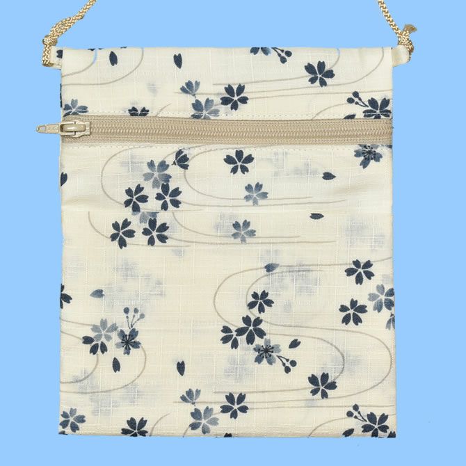 お祭りポシェット ポーチ 波に桜 ベージュ