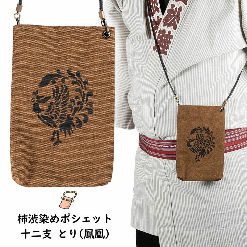 柿渋染めポシェット 干支 鳥 鳳凰 酉年