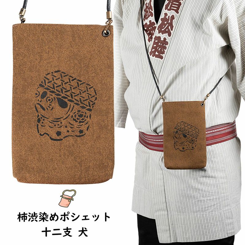 柿渋染めポシェット 干支 犬 戌年