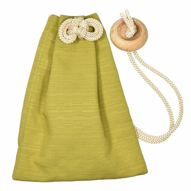 腰下げ巾着袋 紬無地 うぐいす