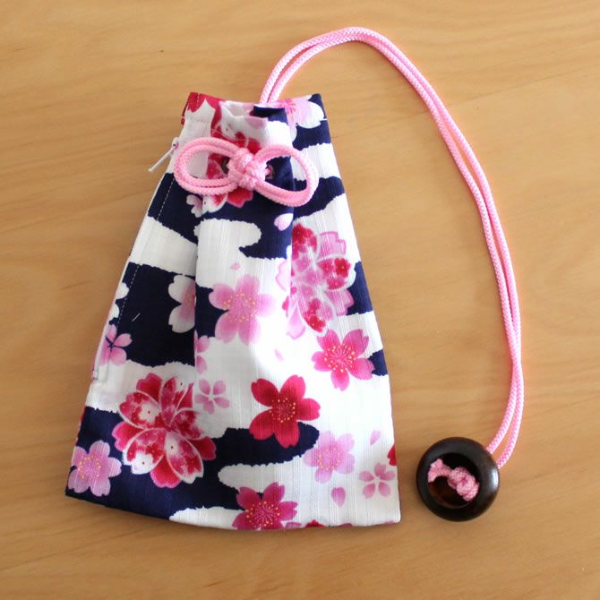■帯に付けて使用する、お祭り専用の腰下げ巾着袋です。巾着袋の横にはチャックが付いておりますので、中の物の出し入れが簡単にできます。
