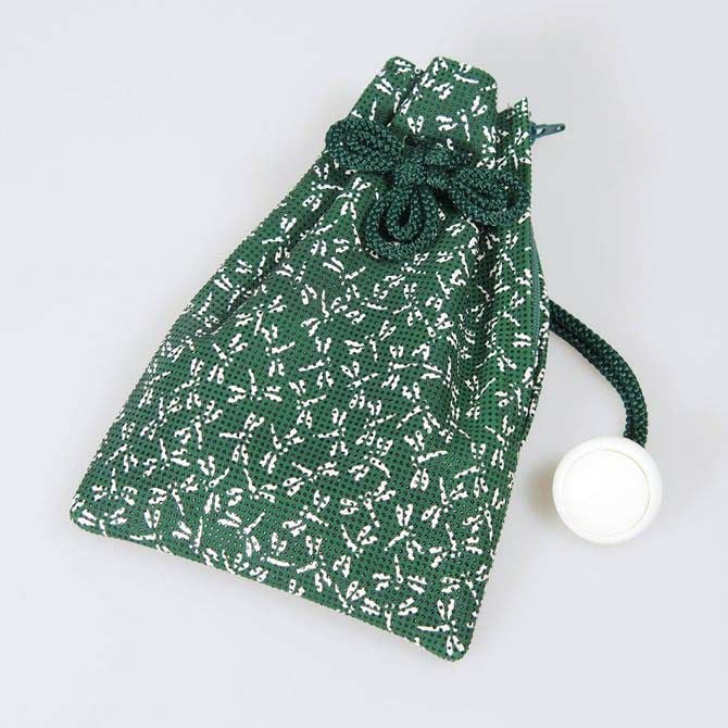 革製 腰下げ巾着袋 鹿革 とんぼ 緑色