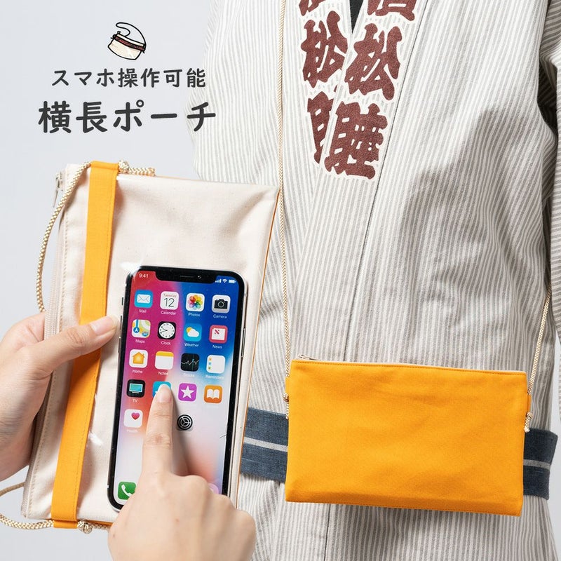 スマートフォンを裏の透明ポケットに入れたまま操作することができるスマホ操作対応のお祭り専用ポーチ(ポシェット)です。