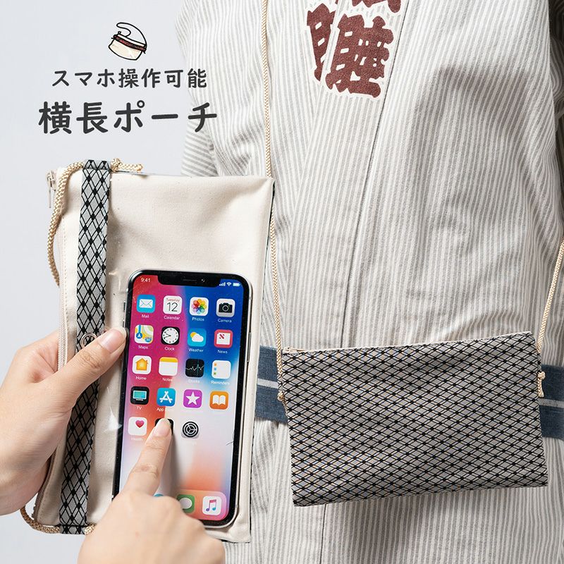 スマホ操作対応お祭りポーチ 東京江戸一 業平格子
