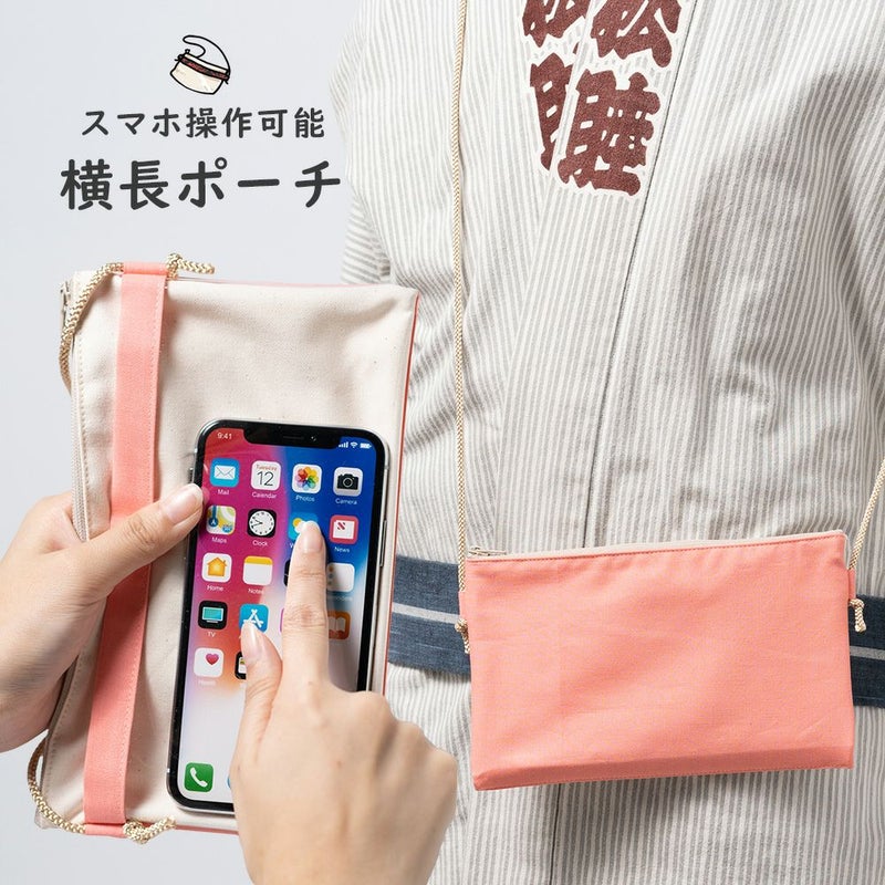 スマートフォンを裏の透明ポケットに入れたまま操作することができるスマホ操作対応のお祭り専用ポーチ(ポシェット)です。