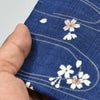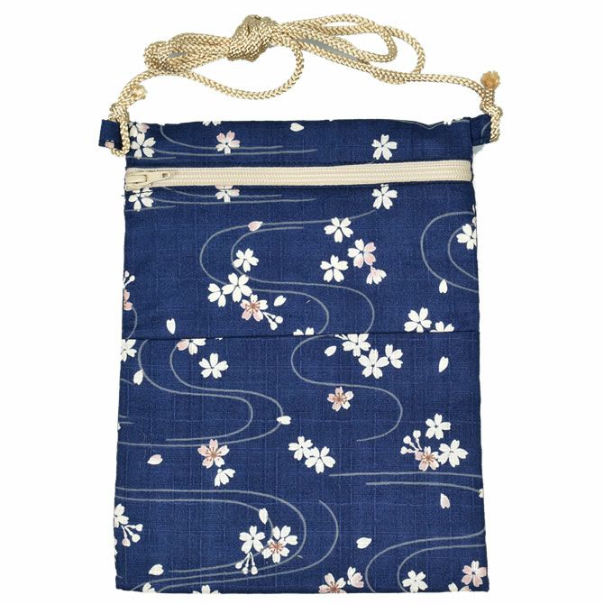 お祭りポシェット 縦長ポーチ 波に桜 紺