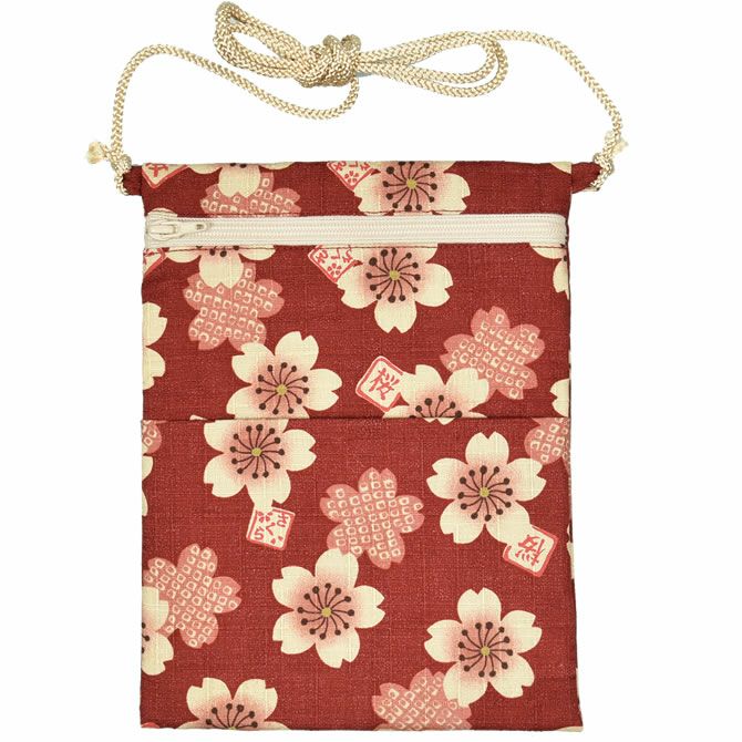 お祭りポシェット 縦長ポーチ 大さくら エンジ