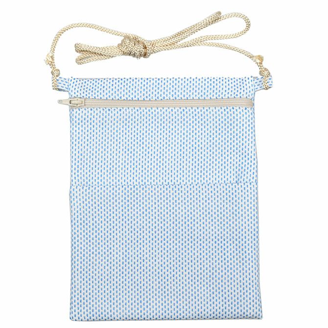 お祭りポシェット 縦長ポーチ 水色刺子