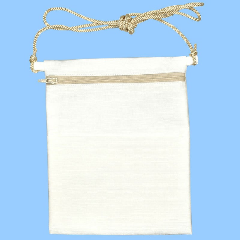 お祭りポシェット 縦長ポーチ 紬無地 白色