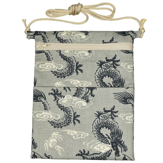 腰下げ巾着袋 龍 グレー