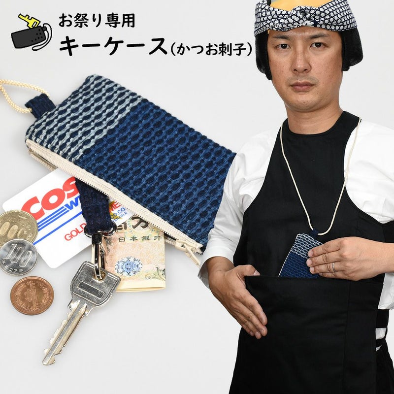 お祭りキーケースポーチ 浅葱刺子