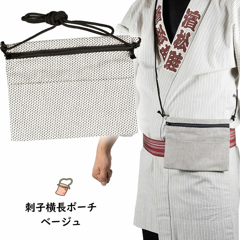 東京いろは お祭りポシェット 横長ポーチ 一本刺子 ベージュ
