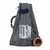 睦刺繍入り 腰下げ巾着袋 薩摩縞(グレー)