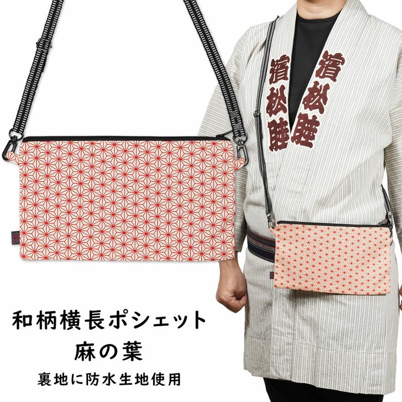 お祭りポシェット 防水 横長ポーチ 麻の葉