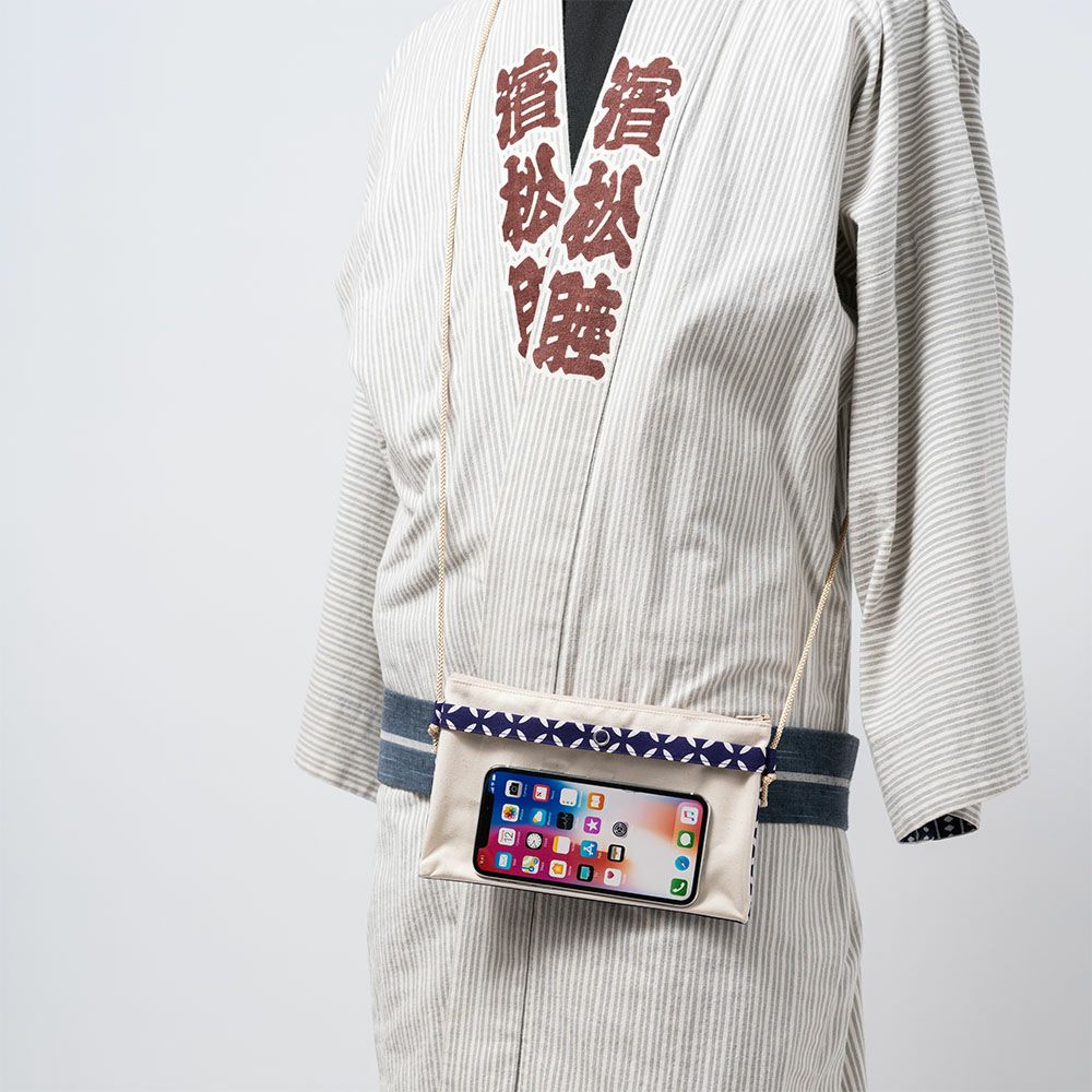 お祭りに参加する時に身のまわりのモノを入れる巾着袋やポーチ、カバンなどの袋物のコーナーです。スマホや財布、手ぬぐいなど、お祭りに必要なモノを入れて、持ち運ぶために必要な商品です。粋にお祭り衣装を演出する腰下げ煙草入れや扇子入れも取り揃えました。