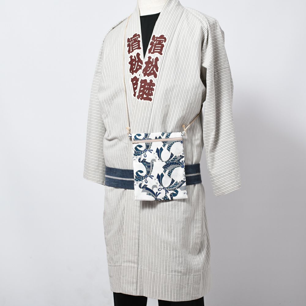 お祭りに参加する時に身のまわりのモノを入れる巾着袋やポーチ、カバンなどの袋物のコーナーです。スマホや財布、手ぬぐいなど、お祭りに必要なモノを入れて、持ち運ぶために必要な商品です。粋にお祭り衣装を演出する腰下げ煙草入れや扇子入れも取り揃えました。