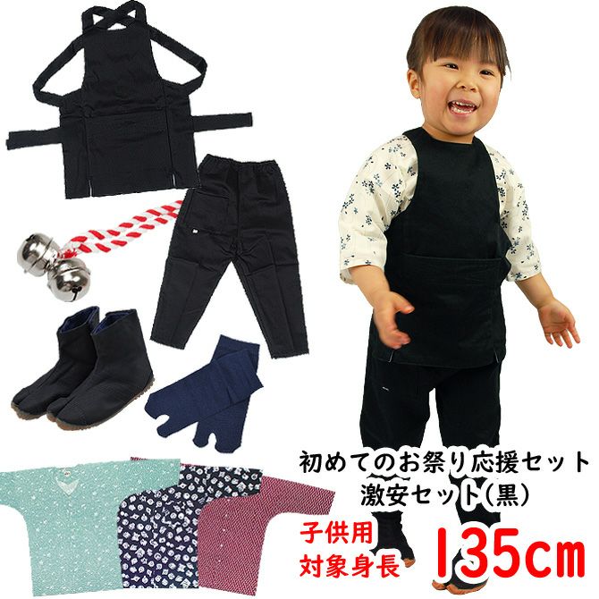 お祭り衣装6点詰合せ 激安セット(黒) 135(9~10歳用)サイズ