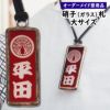 ガラス製の首下げ札にお好きな文字や家紋をお入れいたします。