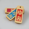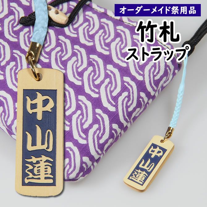 竹札(竹製の木札)にお好きな文字をお入れいたします。ストラップタイプですので、携帯電話やスマホに付けてください。また、お祭り用ポーチや和楽器などの祭り小物に付けるのもオススメです。片面のみの文字入れになります。裏面は無地です。文字の色を選択することができます。