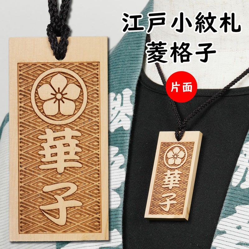 特注 江戸小紋木札 菱格子 片面
