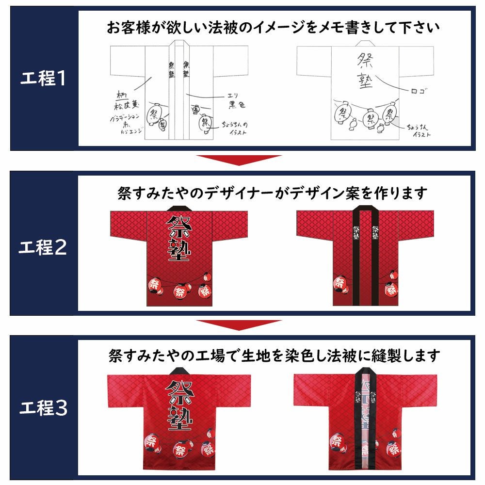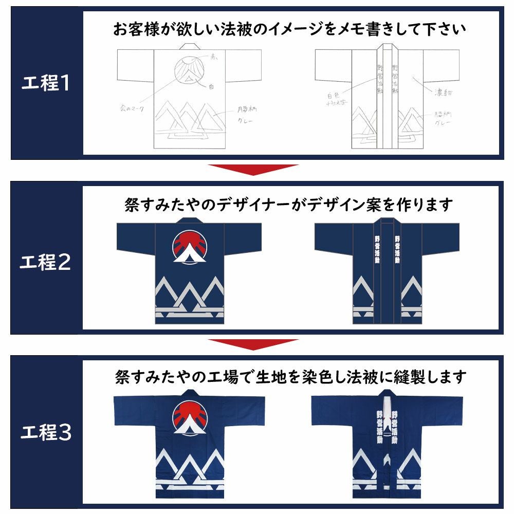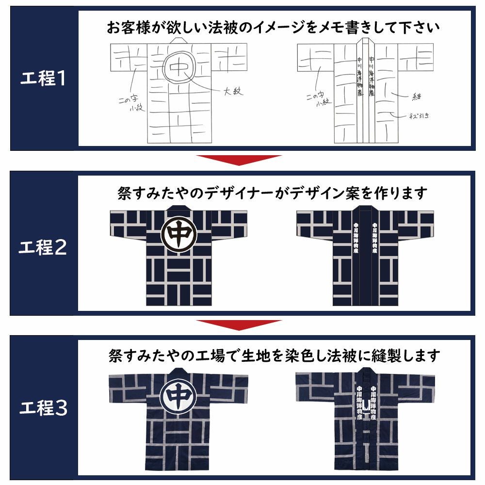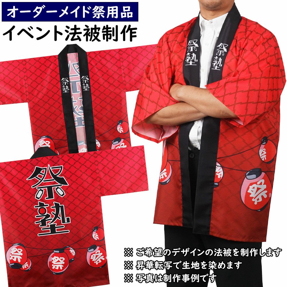 他の画像を見る オリジナルデザインを生地から制作 特注 インクジェット染色 法被制作 綿生地 送料無料 楽天市場価格 ¥ 41,800 のところ 公式ショップ価格 ¥ 33,000 税込 詳細を見る お気に入りに登録する