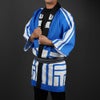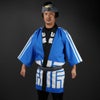 お客様のご希望のオリジナルデザインの印半纏を制作します。インクジェット染色で生地から染めて作る本格的なお祭り用の法被です。ポリエステルの生地を使用して制作します。綿素材の法被よりもシワが付きにくく、発色が良いです。
