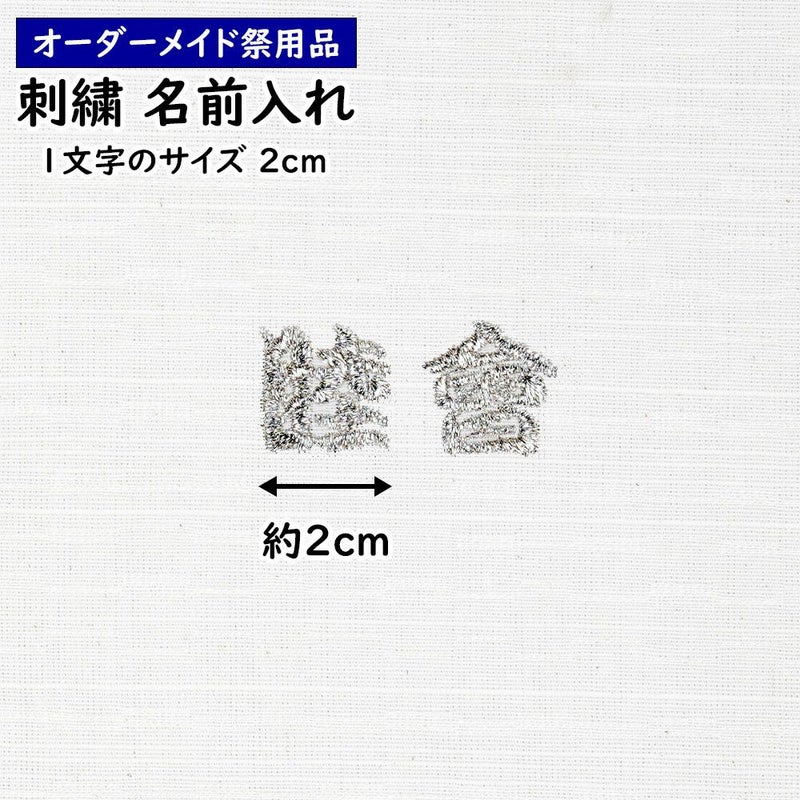 特注 刺繍文字入れ 一文字:約2.0cm 1文字単位