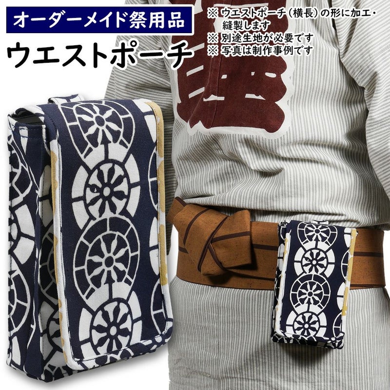 町内手ぬぐいやお好きな生地を当店宛てに送ってください。生地到着次第、ウエストポーチの形に加工縫製いたします。