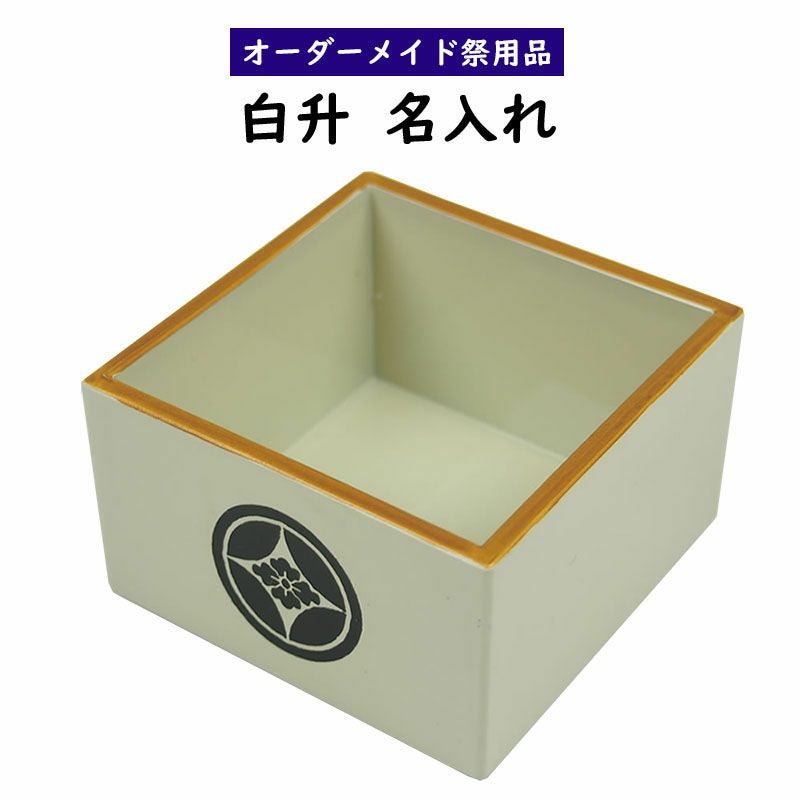 特注 名前・家紋入れ升 プラスチック製 オフホワイト(白) 1合サイズ